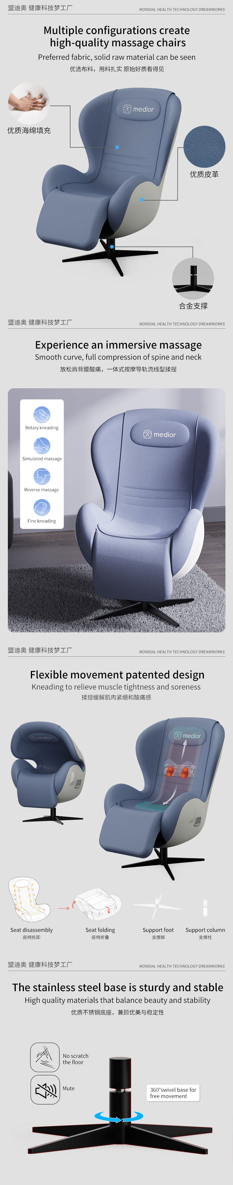 柔性休閑按摩椅 可坐可躺90-160°角度可調節(jié)仿真人揉捏按摩手法舒緩腰背 多功能遙控器一鍵啟動 按摩行程95cm,從肩膀到小腿360°旋轉可拆卸披風 方便清洗 獨家專利柔性機芯 超薄可折疊 包裝體積小