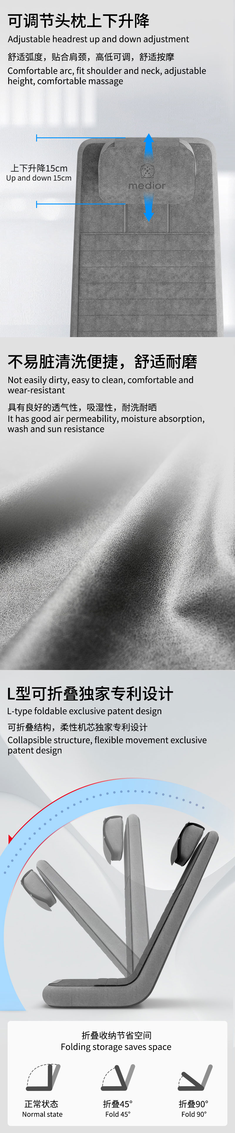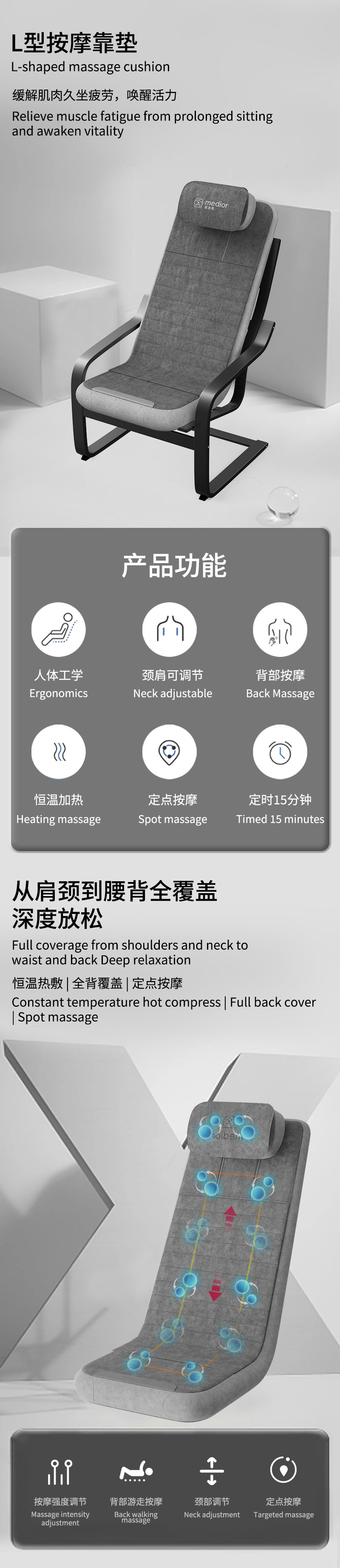 3、力度三檔調(diào)節(jié),頸部揉捏,定點(diǎn)按摩,腰背按摩、臀腿按摩、全背按摩模式選擇