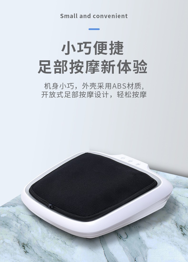功能特征:腳底六個按摩頭,三檔力度調(diào)節(jié),按摩頭正反轉(zhuǎn),按摩頭加熱,15分鐘定時,可拆洗腳套,按鍵控制面板