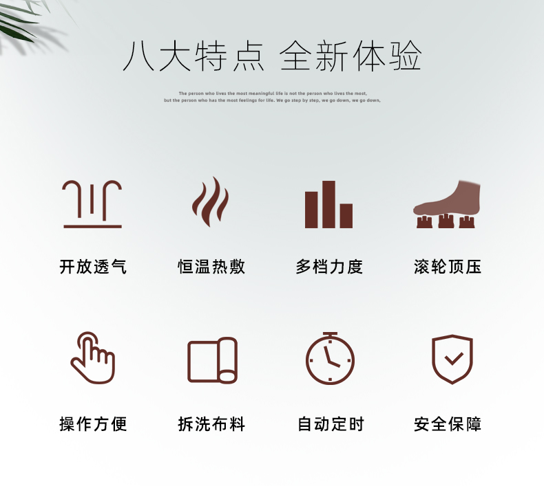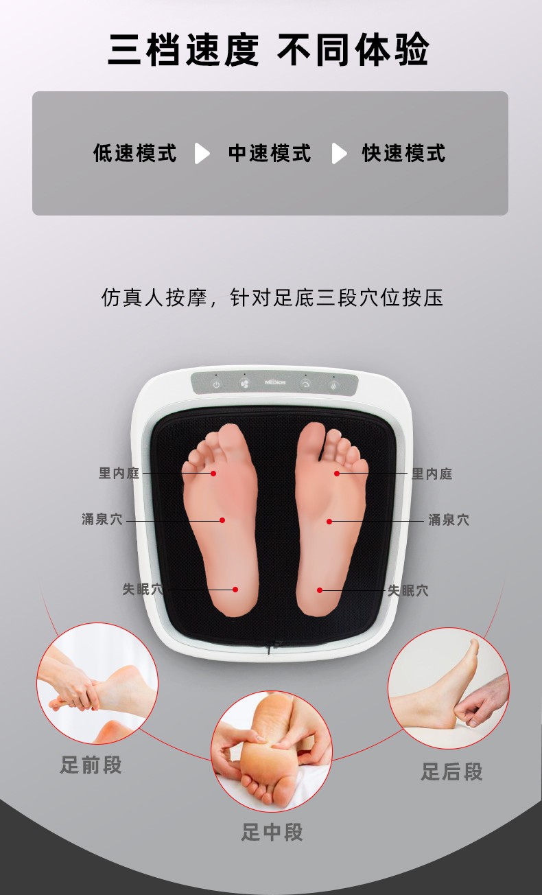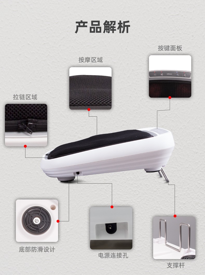 功能特征:腳底六個(gè)按摩頭,三檔力度調(diào)節(jié),